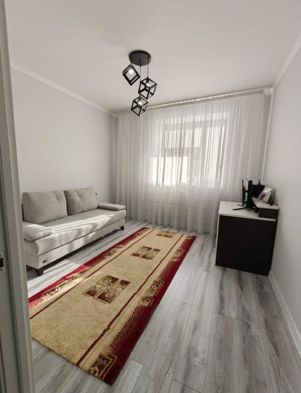 3хк. Абылайхана 13. 1993гп, 3/5, 75квм, блочный, с ремонтом, кухня-студия, середина, ламинат, с/у разд, лоджия, час [больше]